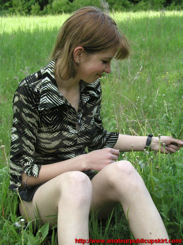 All busy studying the grass this cutie let her short skirt ride up revealing her sexy white panties
