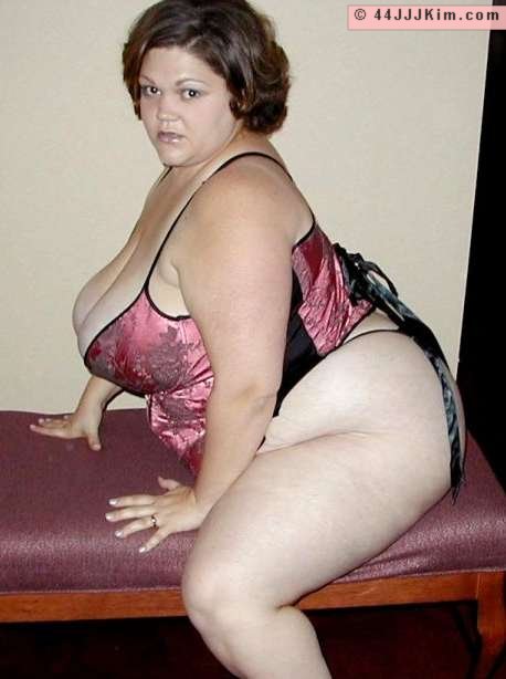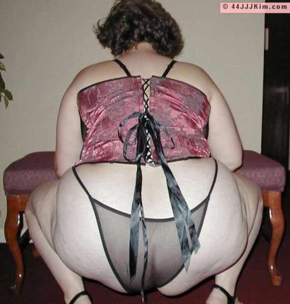 Big boob fat babe Kim in sheer thong panties