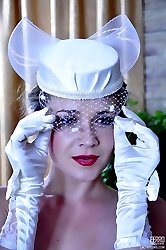 Classy hottie changes her negligee for sheer panties and gartered stockings