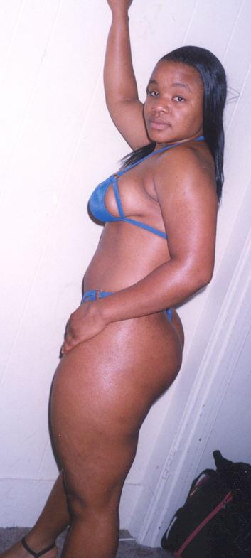 Latonya is a hot young black girl with firm, large, natural ebony boobs and a thick round black booty. She loves to wear her sexy blue g-sting & bra & nothing else